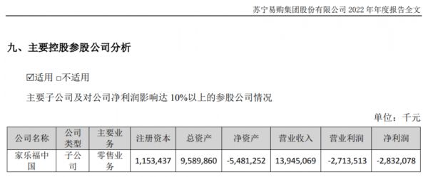 图片来源:苏宁易购2022年年报进入2023年,家乐福中国继续挣扎在亏损泥潭里。今年一季度,家乐福中国的营业收入同比暴跌66%,比“腰斩”更惨,也让母公司苏宁易购的日子雪上加霜。