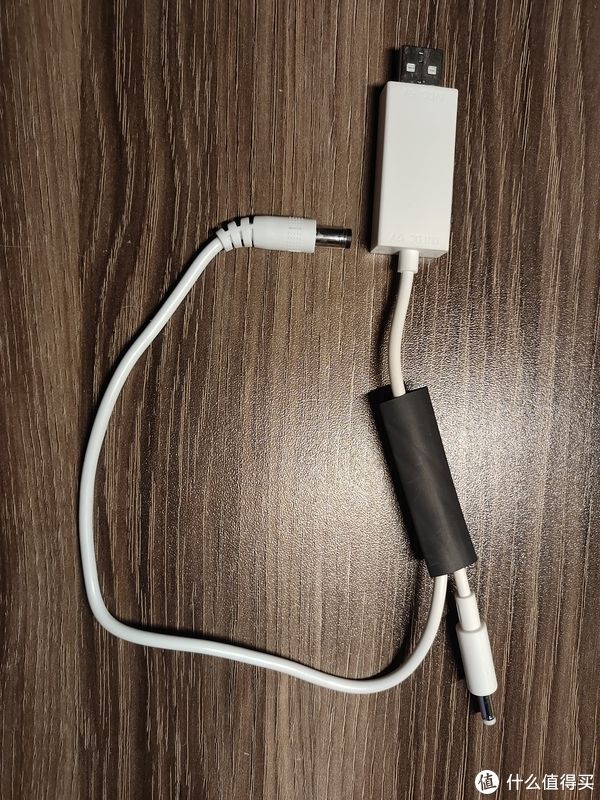 电源端本来想买个12v5.5圆口pd诱骗线就行了9.9包邮。但是本着废物利用的原则,升压线基本就没用过(但是去年户外烧烤用了两次15w都是户外最亮的那个),把升压线破了口,插接了一个玩客云的5.5公头。