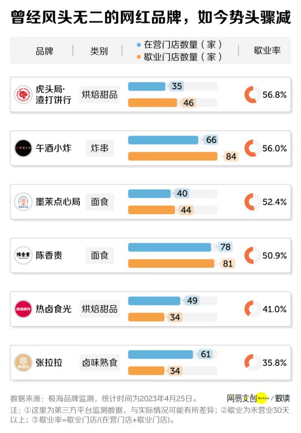 而在过去一年多时间里,大规模闭店的网红小吃品牌们,不只墨茉点心局一家。