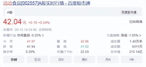 截止发稿,洽洽股价依旧徘徊在40元附近。