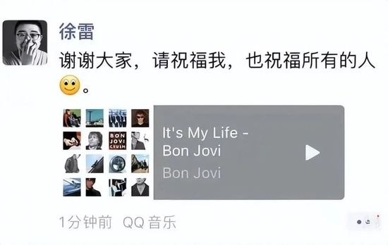 5月11日晚上7点,一首美国摇滚乐队 Bon Jovi 的《It‘s My Life》,被徐雷引用在朋友圈,配文:“谢谢大家,请祝福我,也祝福所有的人。”正式宣告他作为“京东核心高管”的职业生涯画上句点。