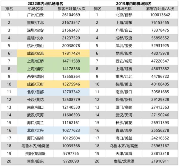 在2022年,1000万人次以上的机场不超过20座,疫情之前约为40座左右。