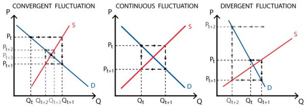 这种情况会在供需坐标图上形成收敛型蛛网: