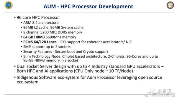 C-DAC预计AUM处理器预计将在 2023 ~ 2024 年上架,到 2024 年底将帮助印度国家超级电脑 (NSM) 计划实现 64 PetaFlops 的运算能力。