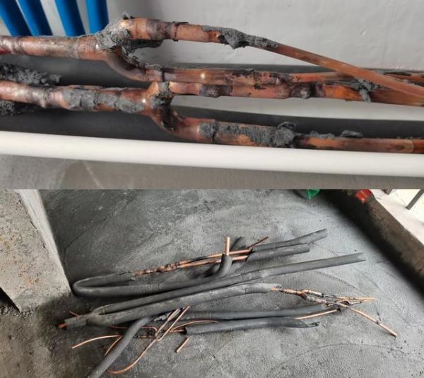 然而安装当天,郭先生在现场检查时发现,工人所使用的安装材料并非COLMO专供材料,其中导风帆布为三无产品,高、低压铜管有多处焊接(非整管),铜管壁厚仅为0.6mm,不符合国家标准《GB/T27941-2011多联式空调机组应用设计与安装要求》中对于配管最小壁厚名义值为0.8mm的要求。
