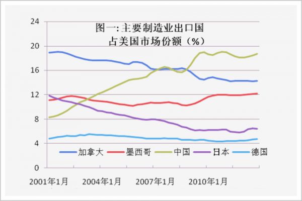 彼时,墨西哥工人的工资大约是中国的六倍,而两国在美国市场的产品类似,均以中低附加值、劳动密集型商品为主。