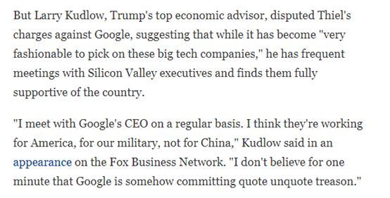 不过,从多家美国媒体的报道来看,这个彼得·蒂尔对谷歌公司做出的这番“通中”指控的依据,其实并不新鲜。