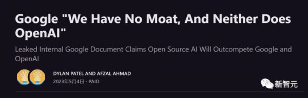 十天前,谷歌的一份内部文件泄漏。在这篇名为《我们没有护城河,OpenAI也没有》的文章里,作者沉痛控诉了开源对于谷歌和OpenAI的沉重打击。