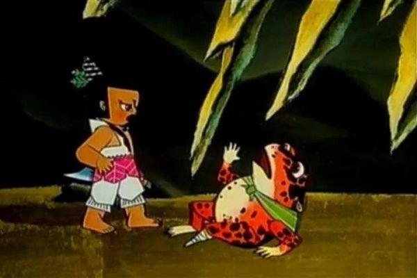如果从外形上考据,这只蛙的原型大概来自电视剧《葫芦兄弟》里蝎子精的看门小妖——一只倒霉的独眼蛤蟆精。