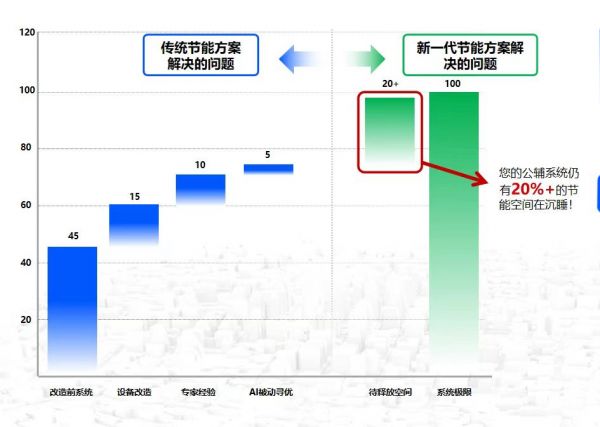 随着国家双碳战略目标落地实施,社会各行业节能降碳与数智化转型的需求越发迫切。在工业与建筑能源系统中,暖通空调、空压系统能耗常能占到其能源总消耗的30%至50%。而目前这些系统的运行能效提升,还常依赖于设备节能(可理解为节能1.0)、专家经验节能(节能2.0)、纯AI被动节能(节能3.0)这三种方式,导致我国每年数千亿度电的能耗被浪费。