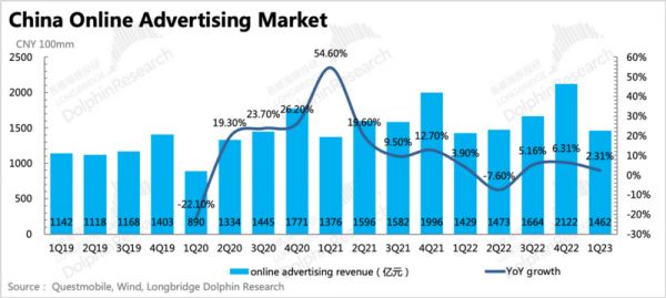 1. 广告超预期加速回暖。年初以来虽然防疫调整,但由于全国还处于感染高峰,并且春节假期较早,因此不少广告主更多的预算都拨给了年后。根据Questmobile数据,互联网行业一季度同比增速预计只有2.3%。
