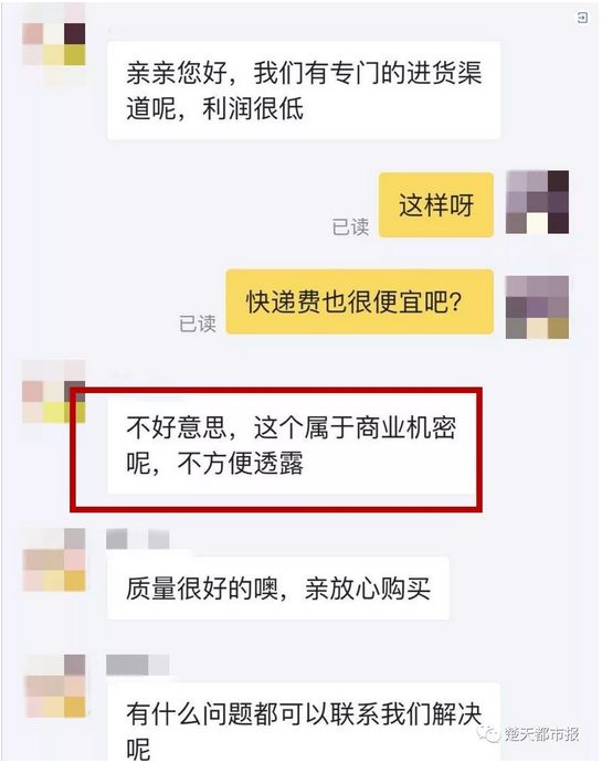 在商品评价里,“便宜”成了出现最高频的词汇。记者咨询了多家店铺客服,询问为何商品能做到这么便宜还包邮。客服多表示有专属进货渠道,薄利多销。至于快递费用,客服们以“商业机密”为由,不愿透露。