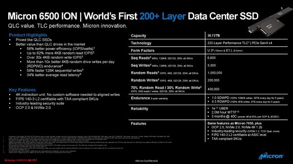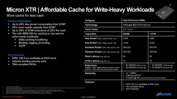 产品在国内被审查 美光发布SLC闪存数据中心SSD:全盘日写60次5年不死