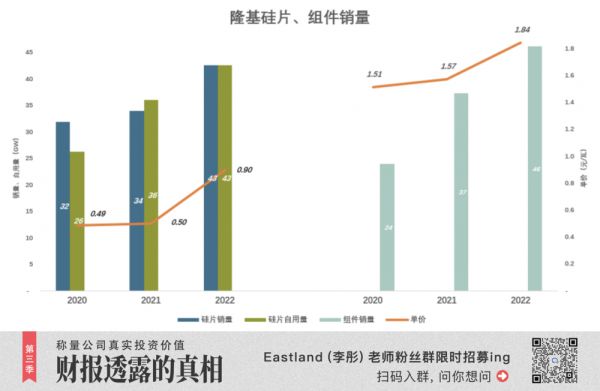 2022年,隆基组件销售收入约为848亿,平均每瓦1.84元,较2021年提高17.3%。