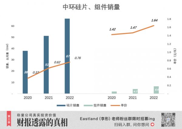 2022年,中环硅片销量达66.5GW,比隆基高56%,每瓦单价0.76元,比隆基低0.13元;