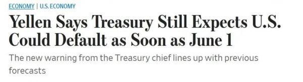 《耶伦仍预计美国最快可能在6月1日突破债务上限》(华尔街日报报道截图)