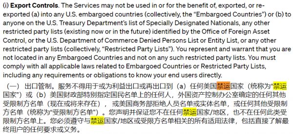 让我们把视野看到OpenAI,会发现对于清理用户数据的条款要友好很多,不过我们也发现了一些极具美国特色的条款,比如说所谓的“实体名单”: