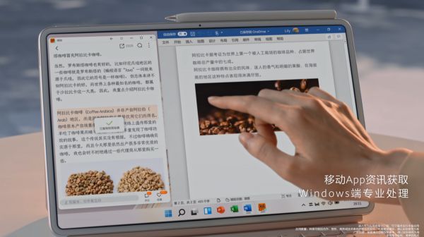 华为官方释放的微博文案似乎也暗藏玄机。不难猜测,新一代华为 MateBook E 二合一笔记本将结合华为鸿蒙的系统生态的优势,突破桌面操作系统跟移动操作系统之间的生态壁垒,做到生态融合,由此提升用户的使用体验。新品预热视频里,主展示了乐享移动App带来的移动生态体验升级。登录华为应用市场可以下载手机平板端的移动应用,感受“用电脑玩手机”。进行办公创作时,可以一边打开移动端App搜集资讯素材,另一边打开Word进行文字编辑,工作效率会更高。