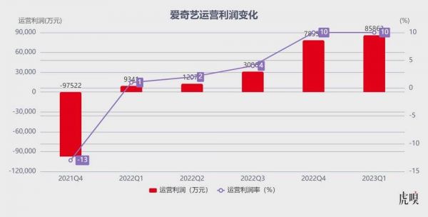 运营利润 8.59 亿元,运营利润率达 10%(作为对比,爱奇艺 2022 年同期运营利润为 9340 万元,运营利润率为 1%),连续六个季度实现增长。