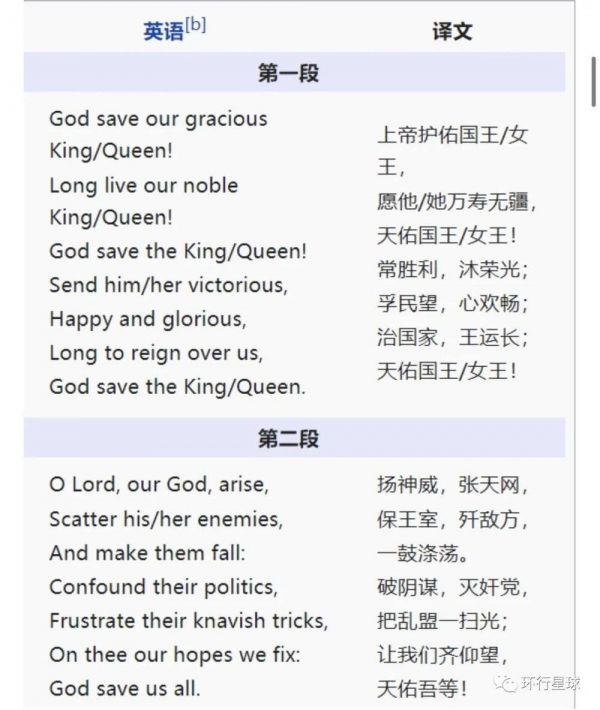 君主一下子换了性别,因此英国的国歌也要跟着改动。图/百度百科