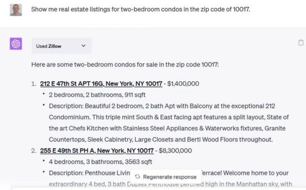 ChatGPT与插件结合,还能够帮我们搜索房源。