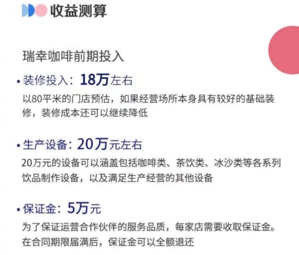 瑞幸的投入测算。图片来源:瑞幸官方资料