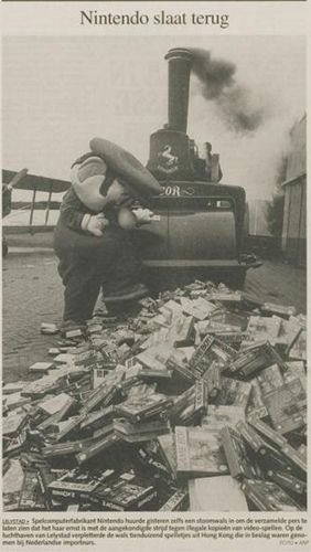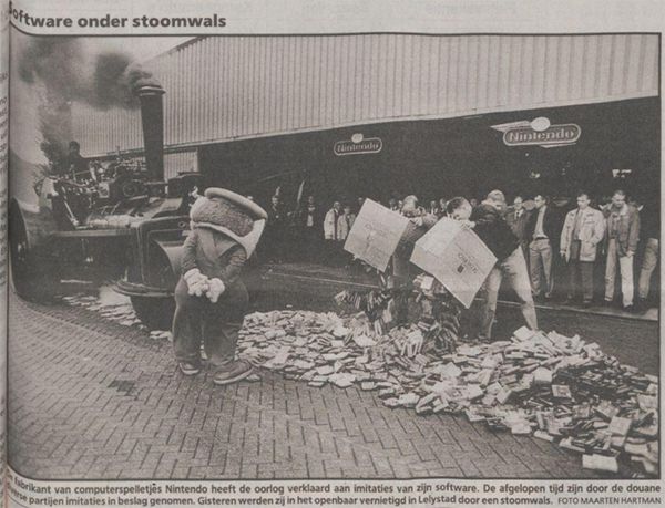 之前任天堂还放出过1994年时的旧照,展示他们收缴盗版后用压路机直接压碎的场面。
