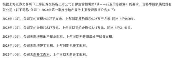 图片来源:华丽家族一季度房地产业务主要经营数据公告