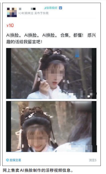 新京报记者近日调查发现,随着AI技术走红以及门槛降低,售卖明星换脸的淫秽视频已经成为一门地下生意。百度贴吧中部分标榜“换脸+女明星姓名”的发帖者,售卖通过AI换脸技术合成的视频,价格可4元一部,也可158元打包购买700部视频。而多位知名女明星频被提及。