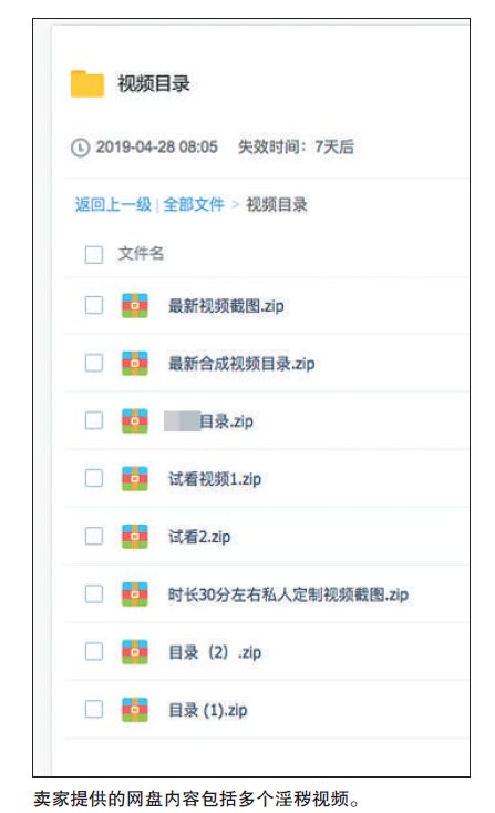 记者分别与4位卖家进行了沟通,其一般会提供标有女明星姓名的目录截图,并以100部打包的形式售卖,价格从10元-38元不等。卖家子君(化名)告诉记者,在他打包售卖的淫秽视频中,知名女性明星被恶意“嫁接”的最多。