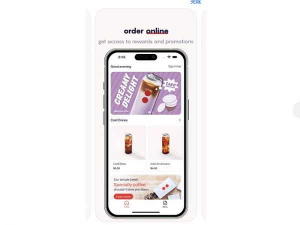 About Time Coffee最独到的地方是便宜。平均价格在4美元以下,比星巴克的平均售价要便宜1美元,首次下载App,注册还能免费送五杯。