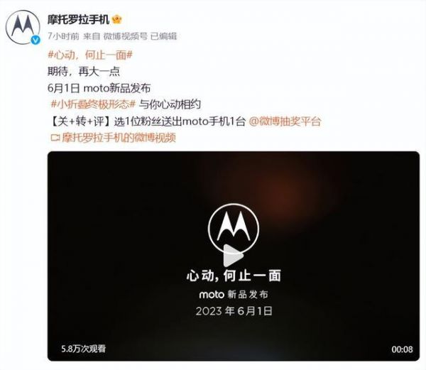 简单介绍完荣耀,我们再来看看摩托罗拉,此次它要发布的新机,不是传统直板机,而是折叠屏。官方宣布将于6月1日举行moto新品发布,宣称新机是“小折叠终极形态”。