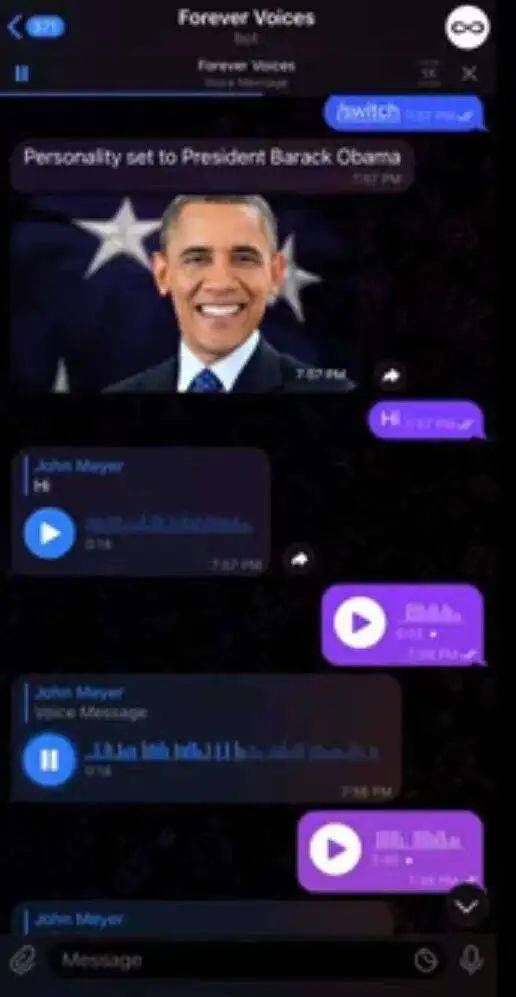 该CEO介绍,这些“AI分身们”是利用原始人物声音,训练出一个AI模型,然后将模型连接到ChatGPT API。最后,将其全部连接到Facebook Messenger上,以此实现与名人们双向语音对话。
