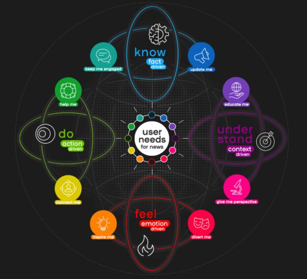 6年前英国广播公司(BBC)开发的“用户需求模型”(User Needs Model)被世界各地的媒体甚至媒体咨询公司广泛应用,连《纽约时报》《华尔街日报》等头部媒体也被圈粉。该模型的倡导者曾表示,其具有80%的适配性。在信息爆炸的今天,媒体行业已普遍采取了以用户需求为中心的内容策略。