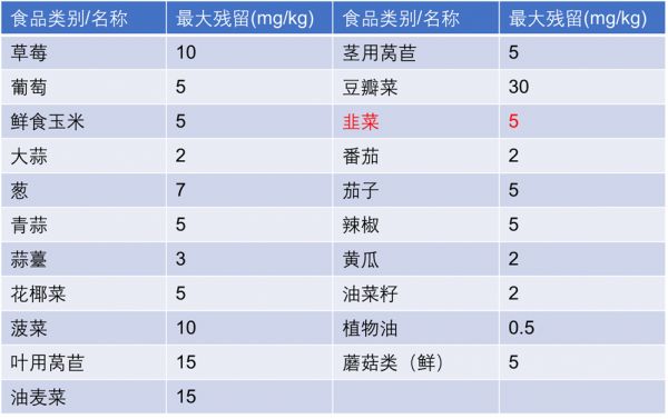 退一步说,假设我们接受我国目前的0.1mg/kg bw/d 的最大允许摄入量,问题也不只关系到韭菜那么简单。