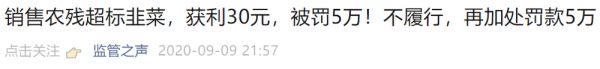 其中“最严格的监管”和“最严厉的处罚”两项,也就是为什么过去几年我们时不时在新闻里看到这样骇人的消息:销售“有毒”韭菜被罚款几千乃至几万元。这其中被罚的原因也大多是腐霉利超标。