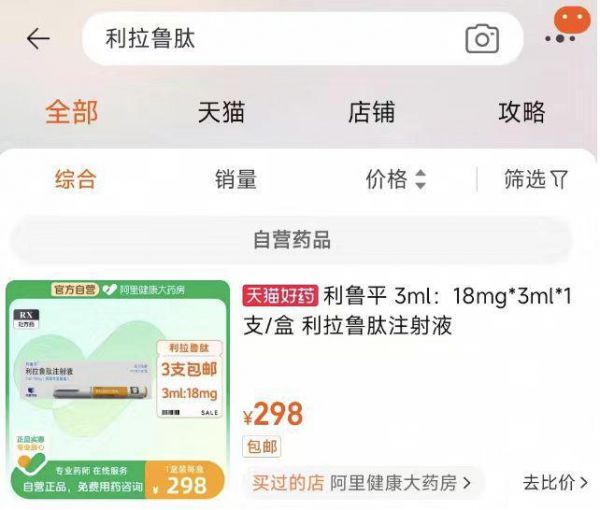 5月19日消息,华东医药全资子公司中美华东的利拉鲁肽注射液(中文商品名:利鲁平)已在阿里健康大药房线上首发。在淘宝搜索“利拉鲁肽”发现已经可以直接进入相关问诊开方与咨询页面,这意味着国内2型糖尿病(T2DM)患者有了更加便捷的治疗新选择。