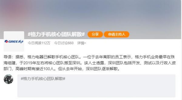 (图源:新浪微博)在经历了并不辉煌的数年造机生涯后,格力手机业务最终还是迎来了早应到来的“审判日”。只是不同于以往看到小众品牌逝去的时候,对于这个结果,我们没有惊讶、没有错愕,更没有惋惜,