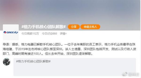 传格力解散手机核心团队,将彻底放弃手机业务?