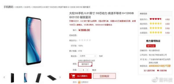 大松5G手机采用了6.81英寸FHD+分辨率的LCD全面盲孔屏,搭载高通骁龙765G 5G处理器,搭载了1600万像素前摄,6400万像素后置四摄,6GB+128GB版本售价2699元,8GB+256GB售价2999元。
