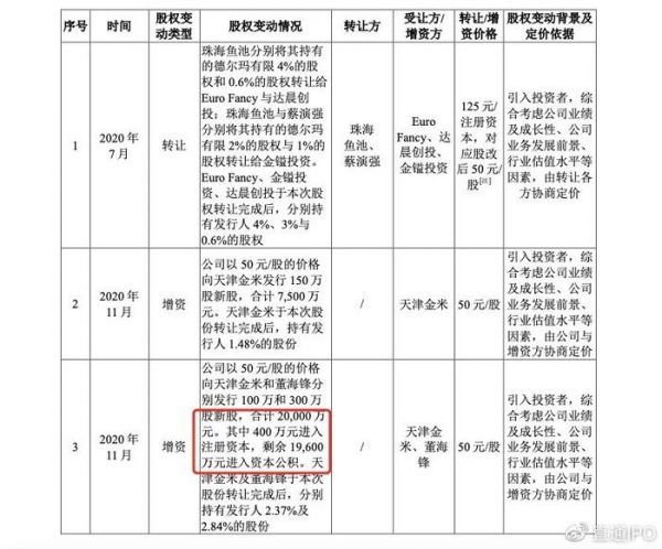 2020年11月,天津金米和董海峰2亿融资中400万元进入注册资本,剩余1.96亿元进入资本公积,这一操作,更像在“催肥”。