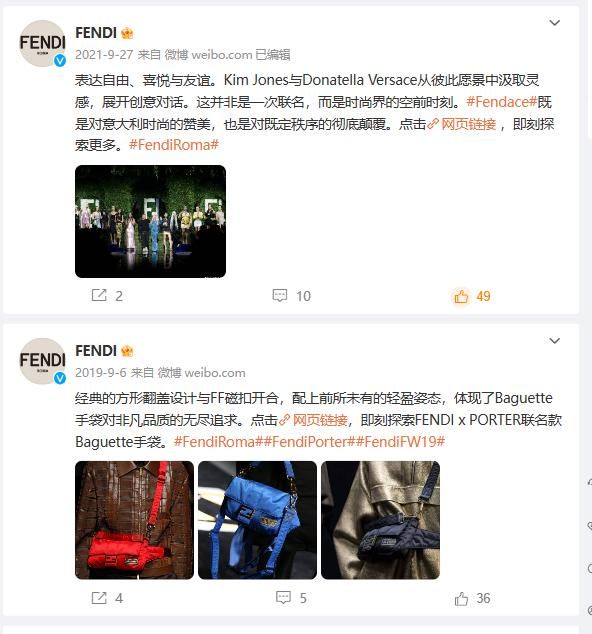 相对而言,Fendi的态度则值得玩味。跨界联名是Fendi常玩的桥段,Fendi此前也和日本小众箱包品牌PORTER、歌手王嘉尔等做过联名合作,每一次Fendi都是毫不吝惜溢美之词。与同为一线奢侈品牌的范思哲联名,Fendi给它上升到“时尚界空前时刻”的高度;与王嘉尔推出限定联名款产品,Fendi更是密集宣传,又是发图文又是发视频,吆喝大家抢先购买。
