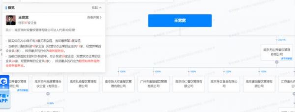 天眼查显示,王宽宽名下一共有37家企业,在2016年注册了王宽宽麻辣烫店,2019年注册了喜姐炸串的母公司无边界餐饮管理有限公司。