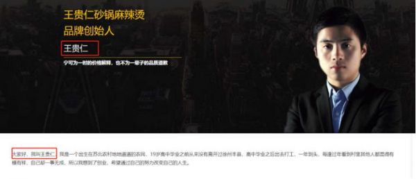 但是有趣的是,在王贵仁麻辣烫官网的介绍中,创始人的图片仍是王宽宽,经历也都一致,名字却摇身一变成了“王贵仁”。