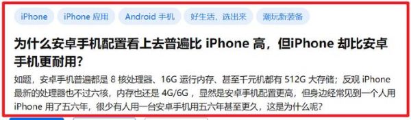 iPhone配置不如安卓手机,但比安卓更耐用?这是今天我在某问答平台上遇到的一个提问,不知道各位网友怎么看,这篇小文说说我的想法。