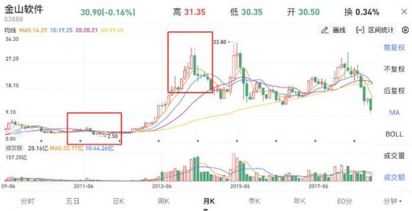 后来,金山网络更名为猎豹移动后在2014年赴美上市;2019年,金山办公完成科创板上市。在把这些业务拆分之后,金山软件本身的市值和业绩并没有打折扣,公司在最初宣布拆分之后的近两年时间里股价涨了10倍不止。