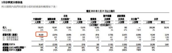 整体来说,中国商业部分是阿里最赚钱的业务,从财报上来看,今年一季度收入1360.7亿元,其中经营利润就有365.3亿元,而其他业务几乎全部经营亏损,可见中国商业的顶梁柱作用有多重要。