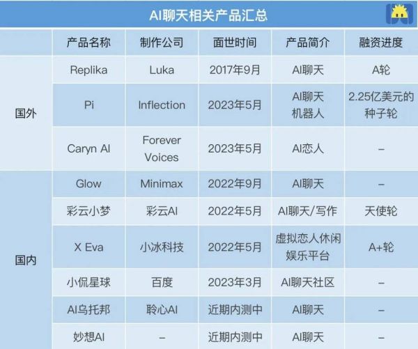 随着用户习惯的养成和ChatGPT技术的发展,国内外越来越多的公司正在盯上AI虚拟聊天赛道,其中不乏百度、小冰等国内科技巨头,不少初创企业也已拿到融资。