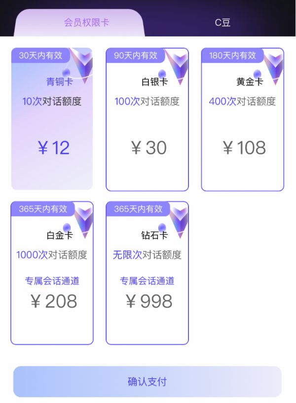 某AI恋人小程序的付费选项