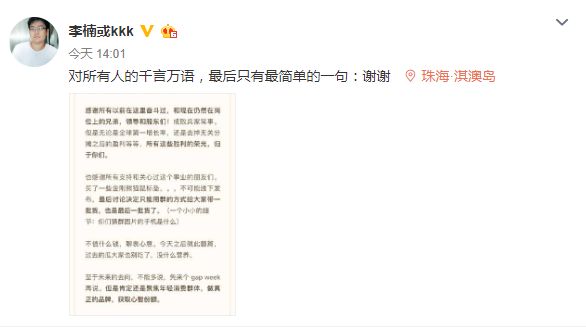 魅族科技CMO(首席营销官)、高级副总裁李楠离职的消息尘埃落定。7月18日下午,李楠在社交网络上发文确认已离开魅族。自此,魅族“三剑客”尽数出局。